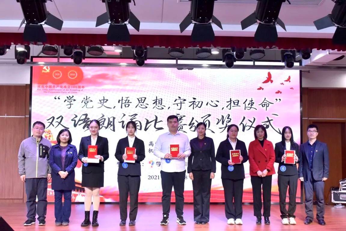 在启航楼二楼多功能厅举行了“学党史、悟思想、守初心、担使命”双语朗诵比赛。本次比赛由六色网