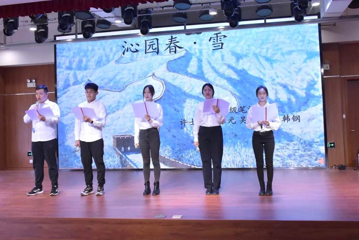 本次朗诵比赛,研究生及本科生共计11组57名选手参赛。朗诵题材囊括爱国主义题材诗文以及红色经典,不仅助力同学们核心价值的生成与民族精神的塑造,更传达着同学对于开国英雄及新时代英雄人物的颂扬;对于中国共产党的矢志不渝;对于新时代中国能够从积贫积弱发展至巍巍然东方强国的自豪。