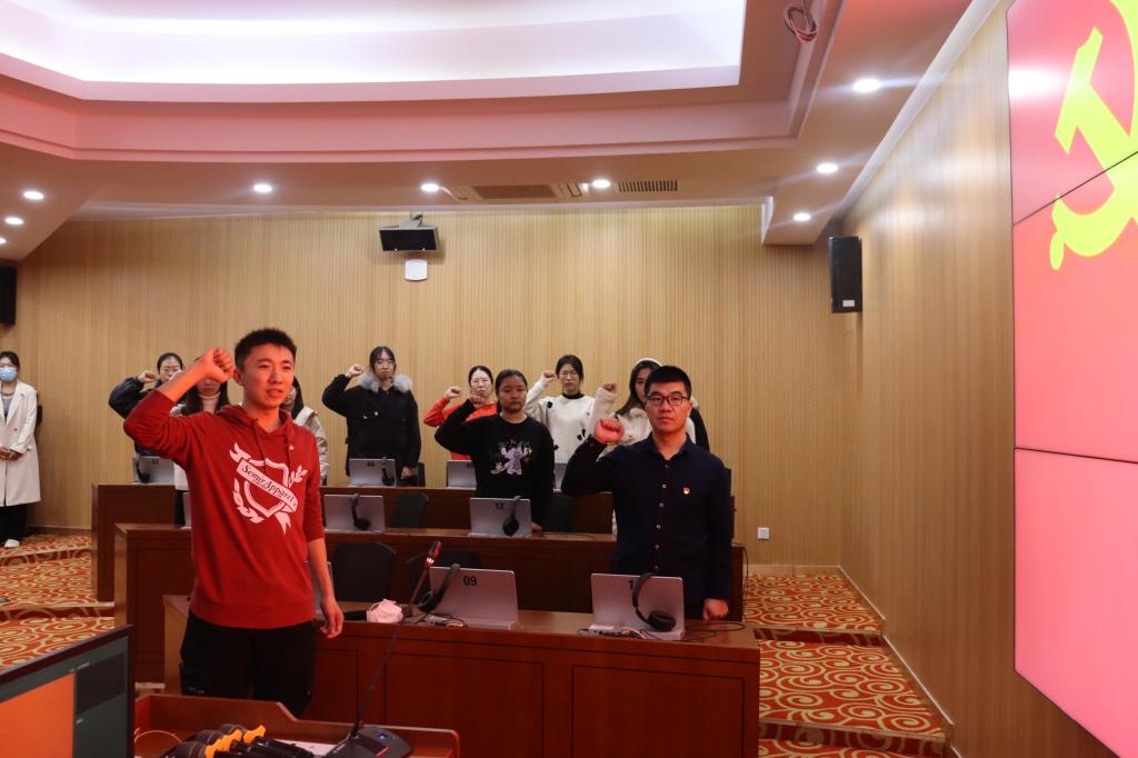 学生党支部于励业楼502教室,举办了全体新党员入党宣誓仪式。
