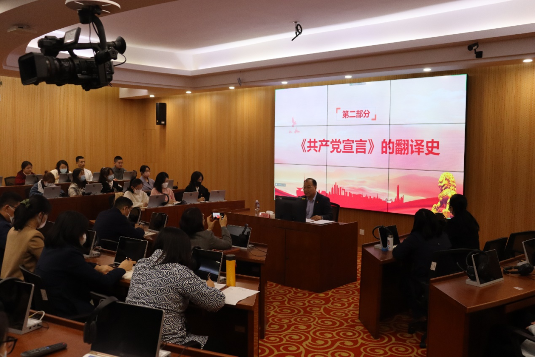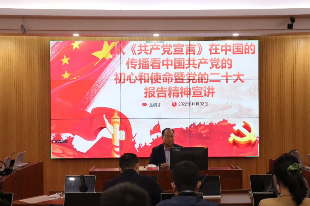 此次党课主要分为四个部分:《共产党宣言》的基本内容;《共产党宣言》的翻译史;《共产党宣言》与中国共产党的初心和使命;全面学习领会党的二十大报告精神。