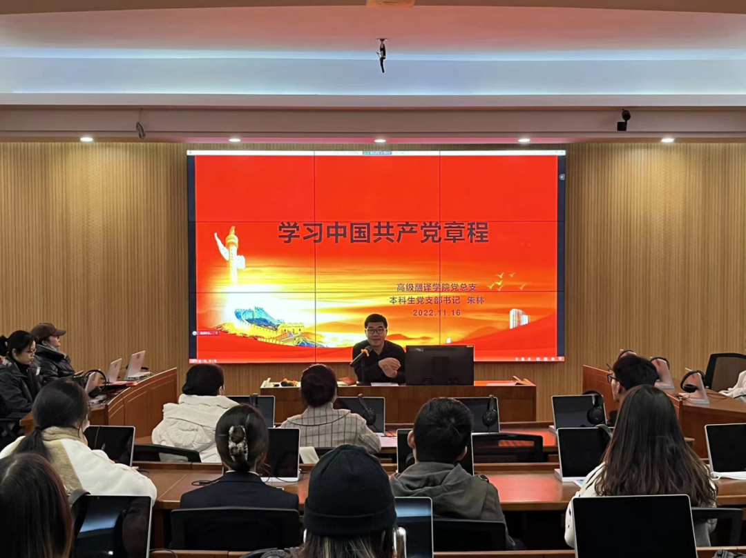 于励业楼502教室召开主题为“学习中国共产党章程”的入党积极分子党课第十一讲,本次党课由六色网