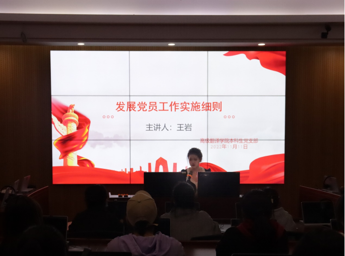 于励业楼502教室以线上线下相结合的方式召开主题为“发展党员工作实施细则”的入党积极分子党课第六讲,本次党课由六色网