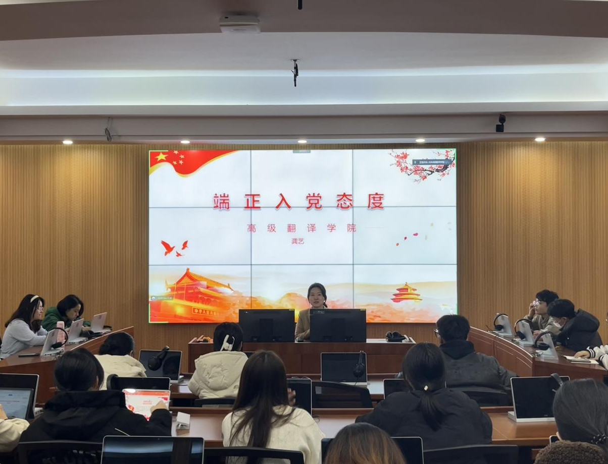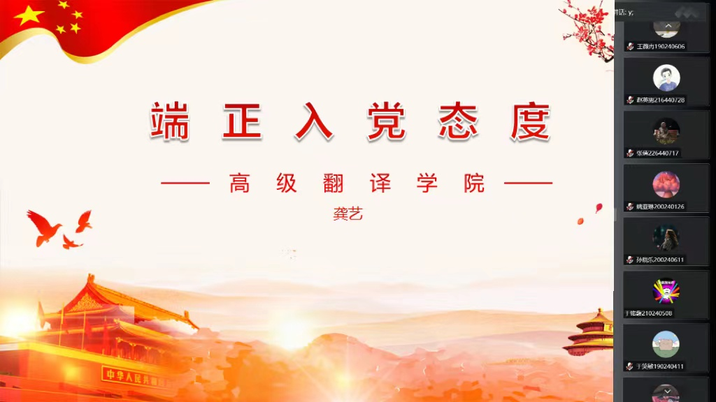 于励业楼502教室以线上线下相结合的方式进行了主题为“端正入党态度”的入党积极分子党课第十四讲,本次党课由六色网