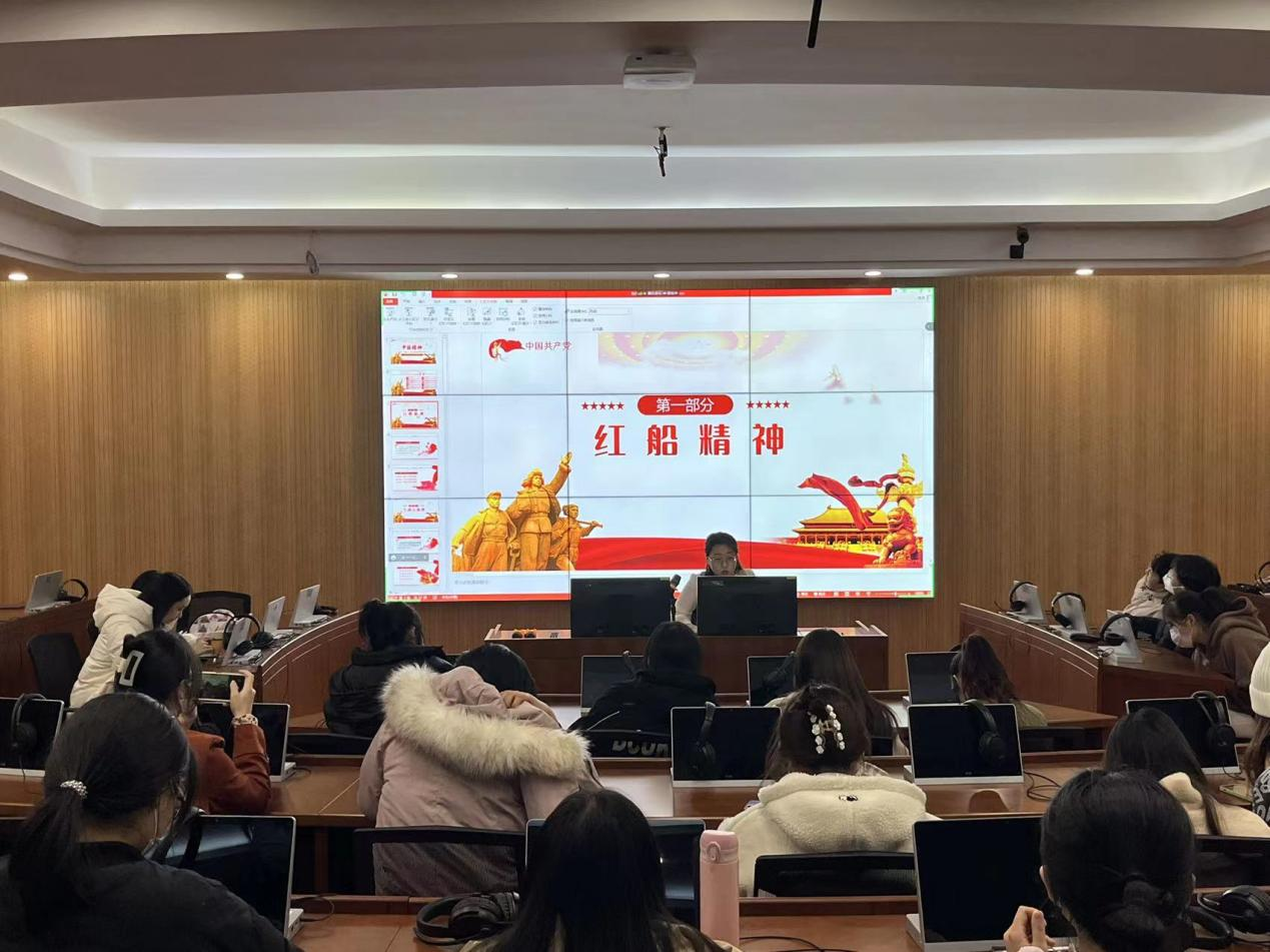 于励业楼502教室以线上线下相结合的形式召开主题为“认真学习党史,汲取奋进力量”的入党积极分子党课第九讲,本次党课由六色网