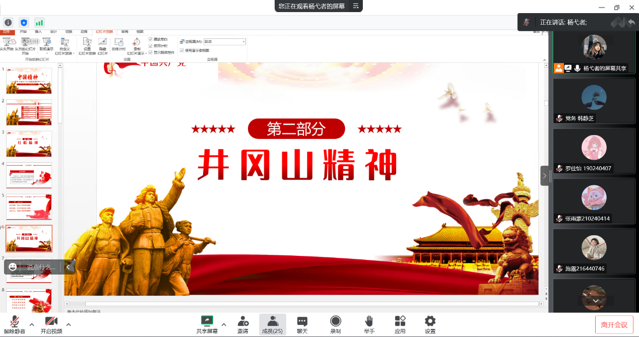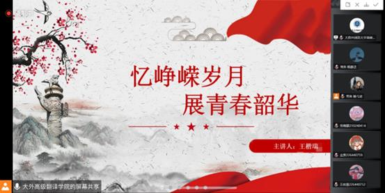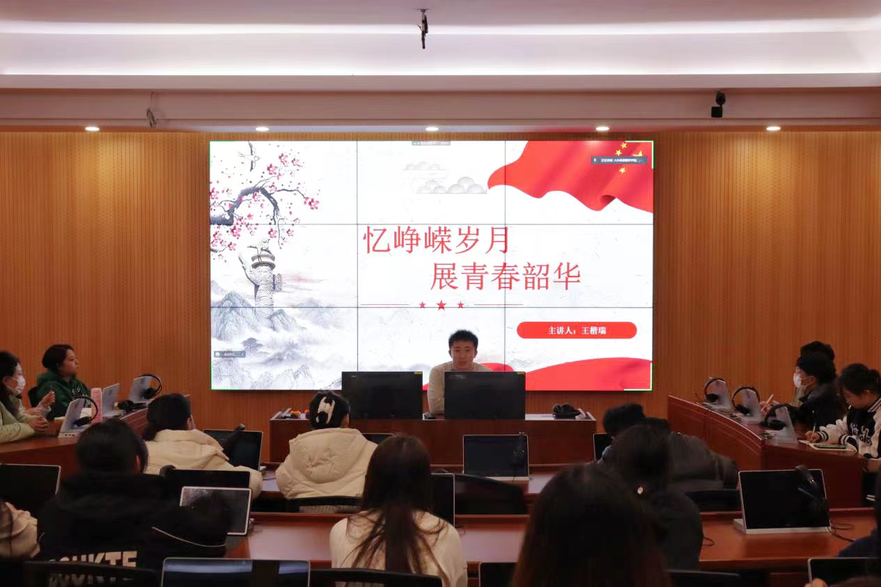 于励业楼502教室以线上线下相结合的形式召开主题为“忆峥嵘岁月,展青春韶华”的入党积极分子党课第十五讲,本次党课由六色网