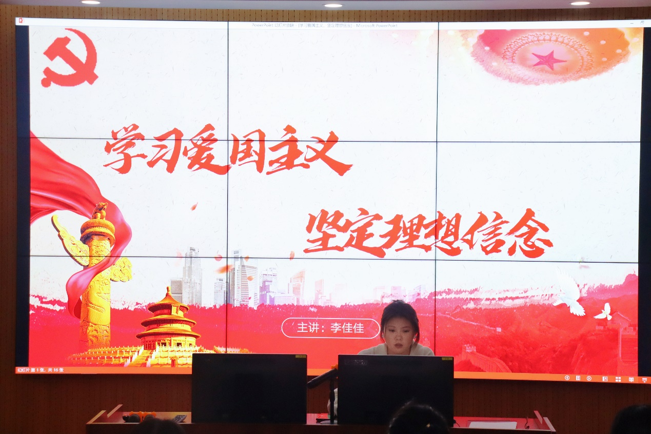 于励业楼502教室以线上线下相结合的形式召开主题为“学习爱国主义,坚定理想信念”的入党积极分子党课第十讲,本次党课由优秀预备党员李佳佳主持召开。