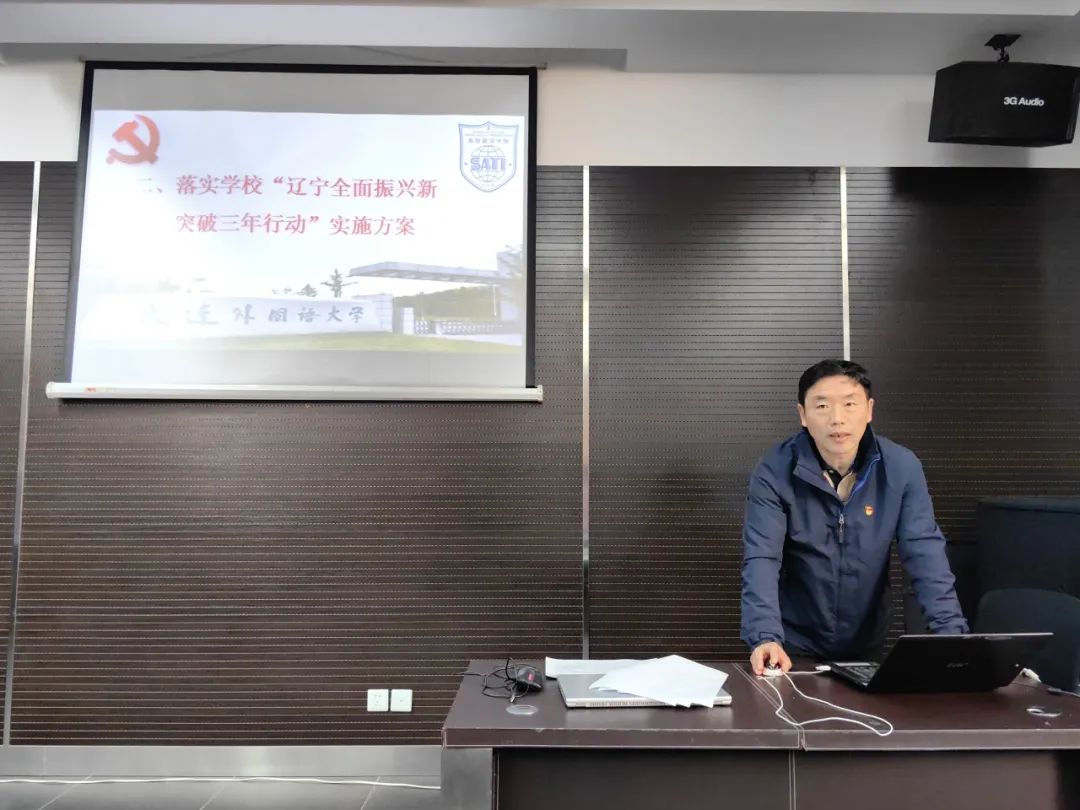 组织开展了专题党课学习。党总支书记姜文龙以《深入学习贯彻习近平总书记在新时代推动东北全面振兴座谈会上的重要讲话精神暨落实学校“辽宁全面振兴新突破三年行动”实施方案》为主题开展了专题党课。党课上,首先传达了习近平总书记主持召开新时代推动东北全面振兴座谈会上重要讲话精神,新时代新征程推动东北全面振兴,要贯彻落实党的二十大关于推动东北全面振兴实现新突破的部署,完整准确全面贯彻新发展理念,牢牢把握东北在维护国家“五大安全”中的重要使命,牢牢把握高质量发展这个首要任务和构建新发展格局这个战略任务,统筹发展和安全,坚持目标导向和问题导向相结合,坚持锻长板、补短板相结合,坚持加大支持力度和激发内生动力相结合,咬定目标不放松,敢闯敢干加实干,努力走出一条高质量发展、可持续振兴的新路子,奋力谱写东北全面振兴新篇章。然后结合学院工作解读了落实学校“辽宁全面振兴新突破三年行动”实施方案。学校将深入贯彻落实《辽宁全面振兴新突破三年行动方案 (2023-2025 年)》,抢抓“十四五”后三年重要窗口期,紧密围绕学校“十四五”发展规划目标,全面加强党的领导,全力巩固内涵建设成效,持续深化综合改革,形成学校内部治理体系协同高效、多学科协调发展的东北亚区域特色鲜明的高质量学科生态体系、高水平人才培养体系、高标准学术研究体系以及高层次对外开放办学格局,不断增强服务振兴发展能力,有效助力辽宁全面振兴新突破。