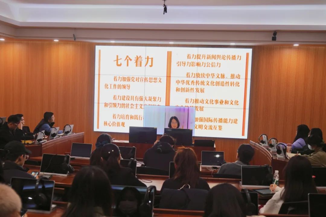 于励业楼502教室召开了“深入学习贯彻习近平文化思想 加强国际传播能力建设 培养高素质翻译人才”主题党课,本次党课由六色网