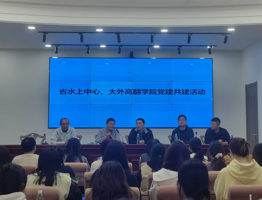 间的党建共建,建立交流平台,为水上运动中心提供翻译人员,同时也为高翻学子提供更多的实践机会。论家国,我们可以为国家荣誉、竞技体育发展贡献力量;论个人,学生可以扩展专业知识面,提升翻译能力。他还表示,竞技体育在体育行业中处于前沿,始终追求“更高、更快、更强”,这就需要在训练过程中引进国外先进的器械、理念。因此,该中心对各语种翻译人才的需求一直存在。随后,两位主任也对有意愿来水上运动中心实习实践的同学表示欢迎,愿为大家提供足够的发展空间。他们希望在未来,有越来越多优秀的高翻学子能加入到他们的队伍中,保障运动员训练的顺利进行,为辽宁省乃至国家的体育赛事取得优异成绩贡献力量。