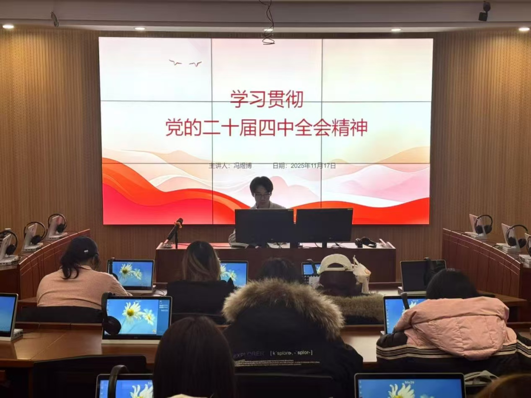 学生党员冯煜博主讲,以“学习贯彻党的二十届四中全会精神”为主题。