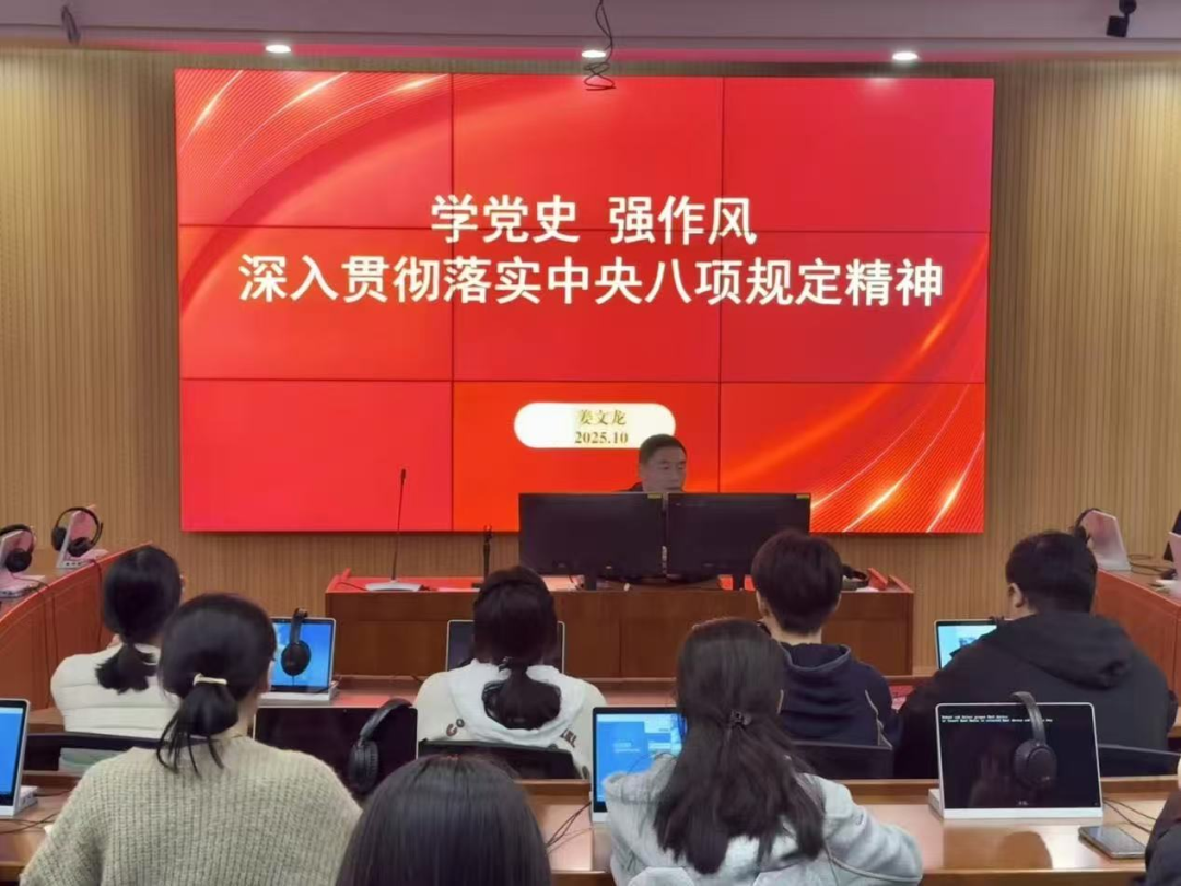 于励业楼502举行第十四期入党积极分子党课开班仪式暨第一讲。本次党课主题为“学党史、强作风、深入贯彻中央八项规定精神”,由六色网