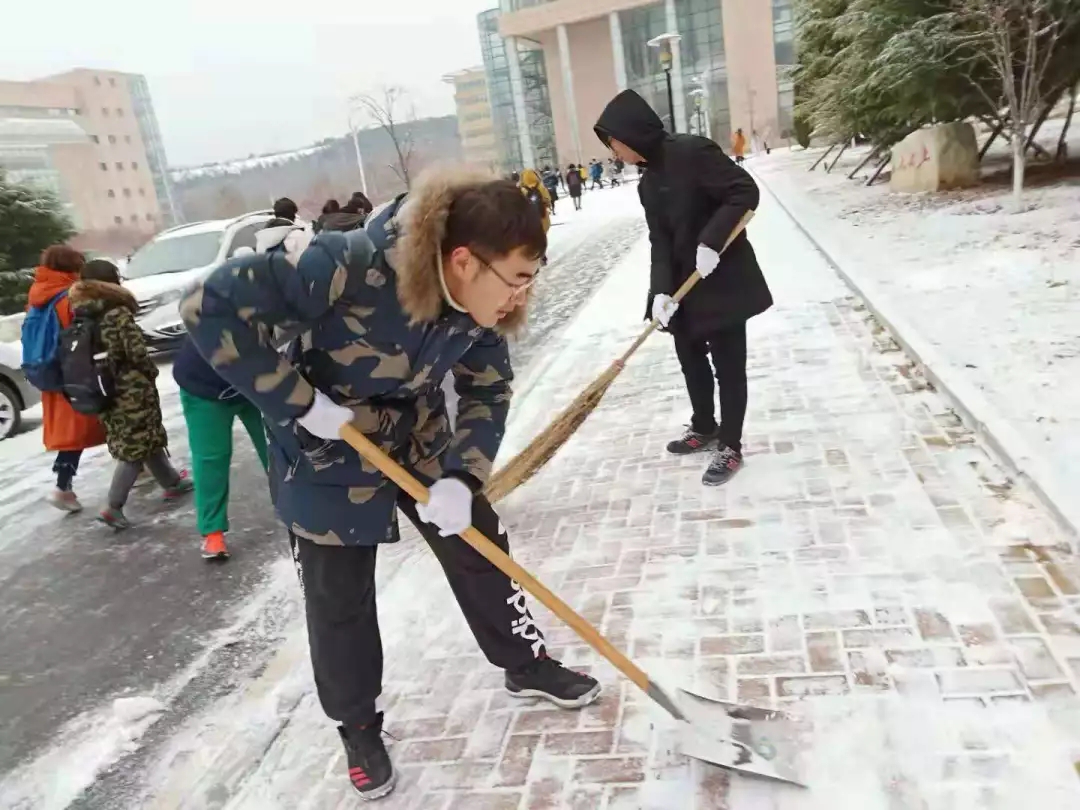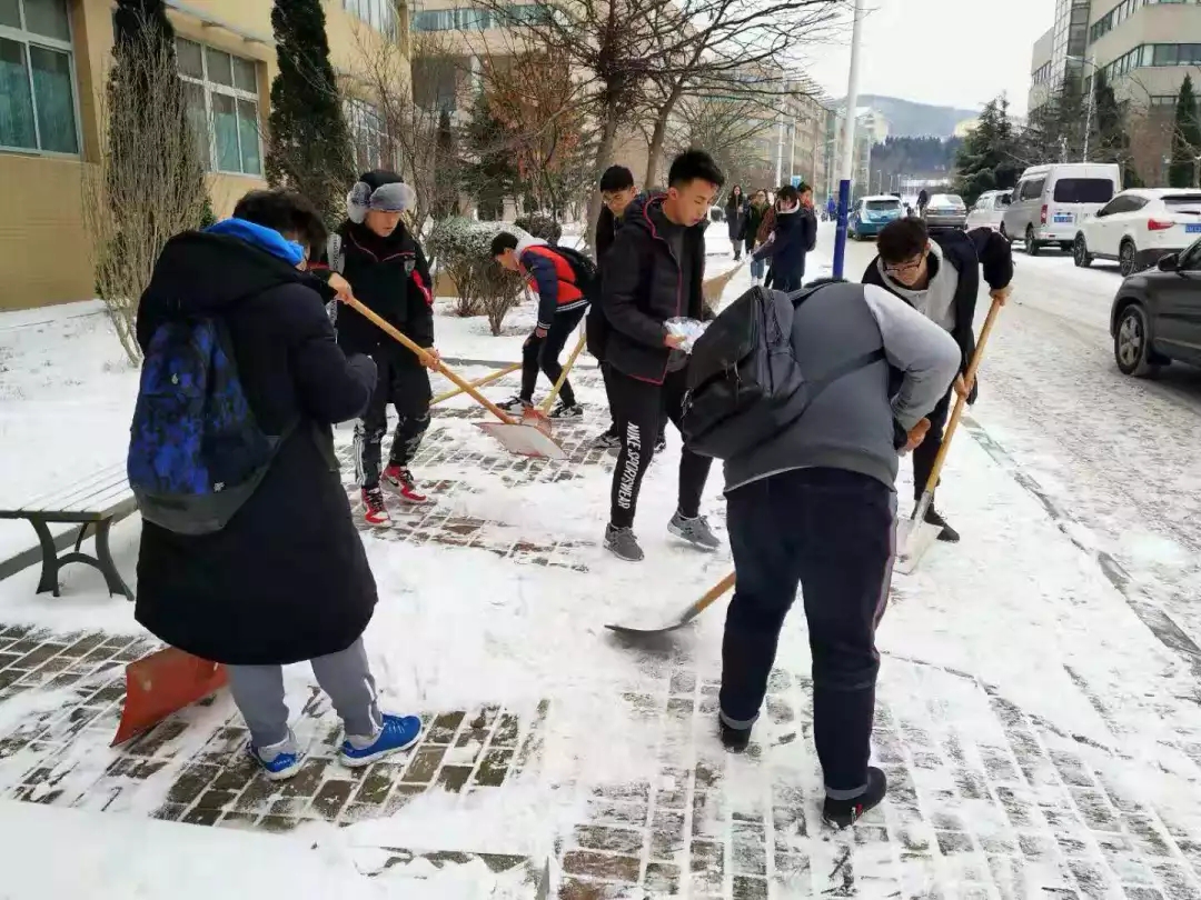 积极组织同学们开展扫雪活动,大家参与热情高涨,对励业楼A区前后两片区域的积雪进行了清理。