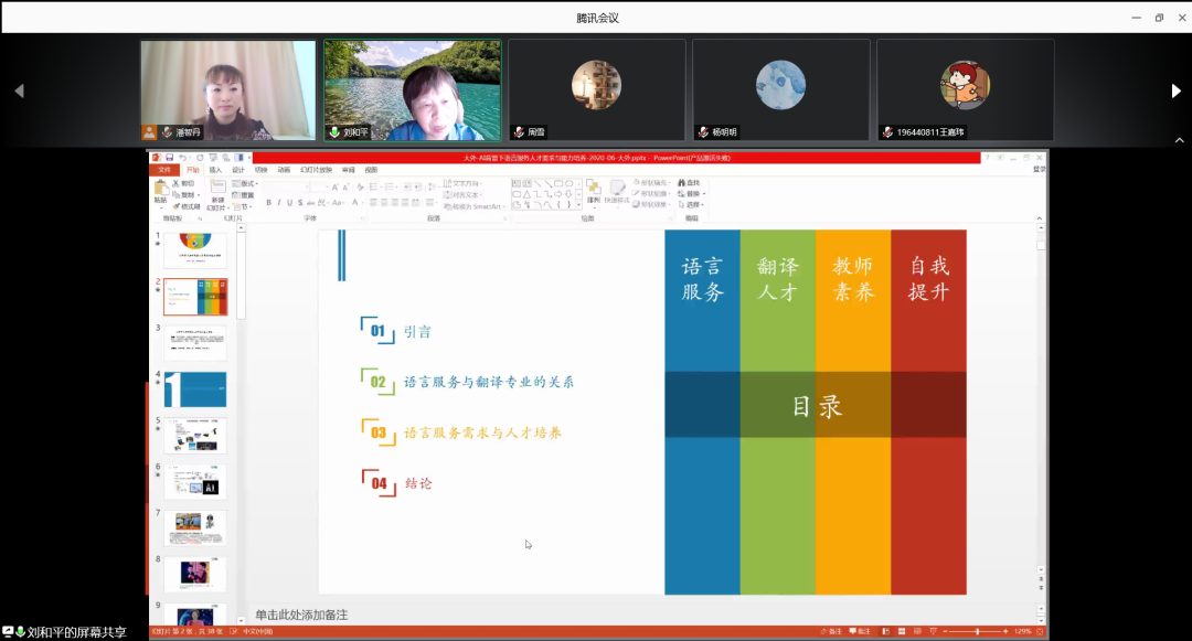 在讲座中,刘和平教授首先介绍了当前AI技术迅猛发展的时代背景,并指出在AI背景下国内翻译专业本科和翻译专业硕士培养单位所面临的诸多挑战。刘教授从语言服务与翻译专业的关系、语言服务需求与人才培养两个方面分析了AI时代对语言服务人才提出的新要求,指出了AI时代翻译教育的发展方向与趋势,同时针对目前翻译专业内涵建设亟需解决的问题,刘教授提出了与时俱进的解决对策。
