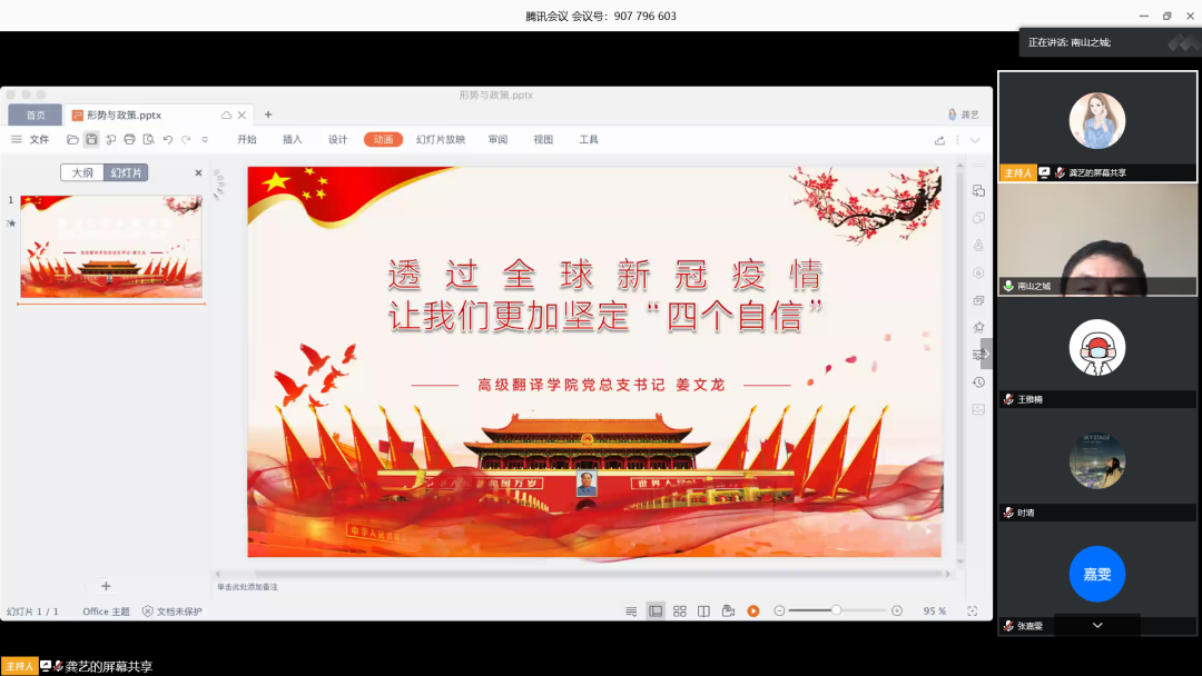 以“透过全球新冠疫情让我们更加坚定四个自信”为主题开展了形势与政策课程。党总支书记姜文龙老师担任主讲人,学院全体党员、预备党员、入党积极分子积极参与其中。