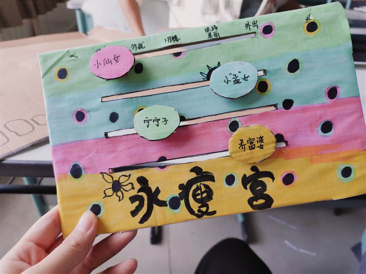 随后,活动进入第二环节“变废为宝”,同学们以寝室为单位,结合网络教程将自带废品加工为生活中的实用物品。活动结束后,各班展示了自制收纳盒、寝室签到牌等优秀作品。此环节的顺利进行不仅丰富了同学们“节约行动”的切实体验,也为同学们日后合理利用废品奠定了良好的基础。