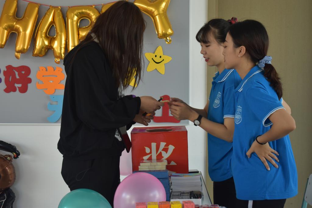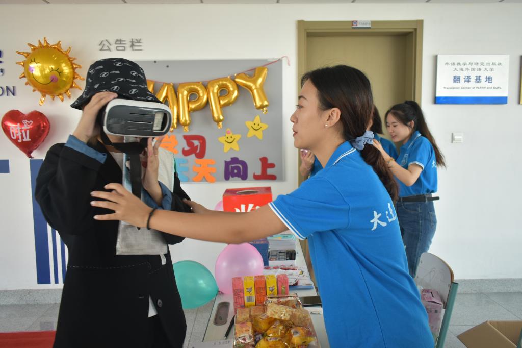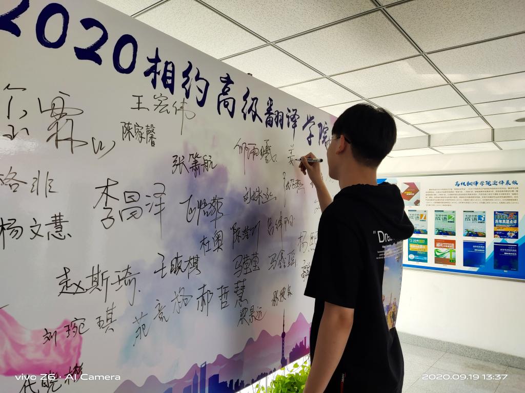 此外,为了帮助新生感受高翻情怀,了解高翻内涵,学院于励业楼设置了高翻宣传板向同学们介绍高翻特色,展示高翻成就。同时,分团委学生会也组织了“翻然归去初心依旧,译海扬帆只待君来”打卡签名活动,设置了抽奖赠礼环节,并为每一位新生提供高翻定制精美礼品。迎新现场,同学们还利用VR设备观大外全景,用拍立得记录报道时刻。