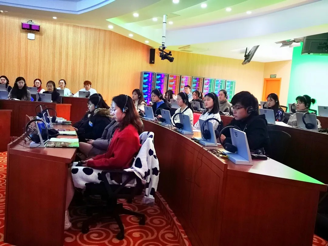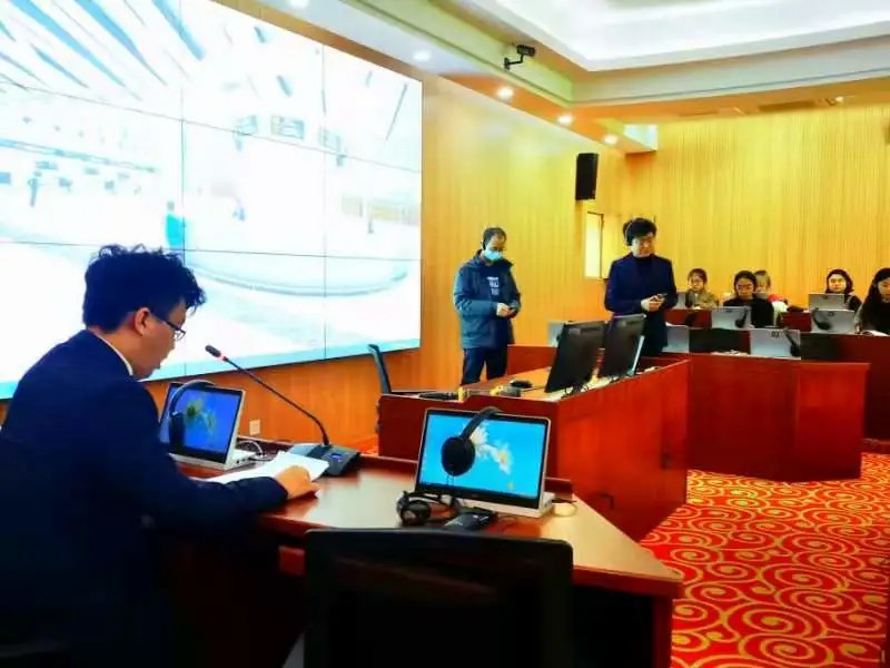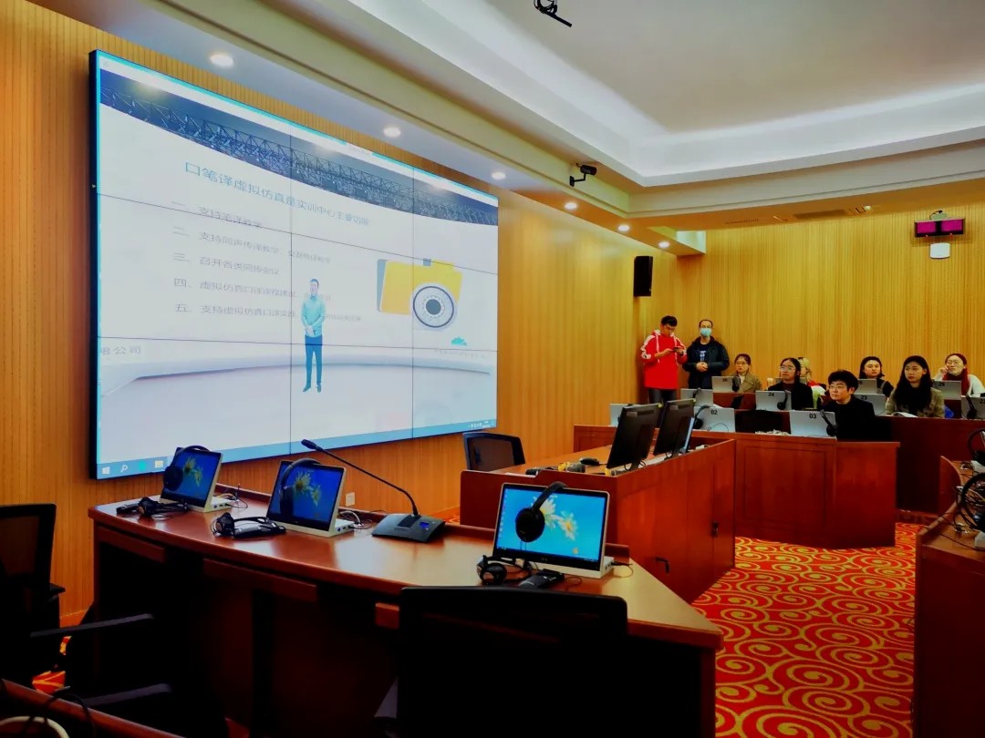 考察过程中,校领导一行首先听取了虚拟仿真口笔译实训中心教学设备类项目承建单位大连朝云科技有限公司负责人金钊总经理对实训中心的教学功能及国家级虚拟仿真课程建设项目相关情况介绍。随后,校领导一行现场观摩了2019年曾获得全国微课大赛三等奖的六色网