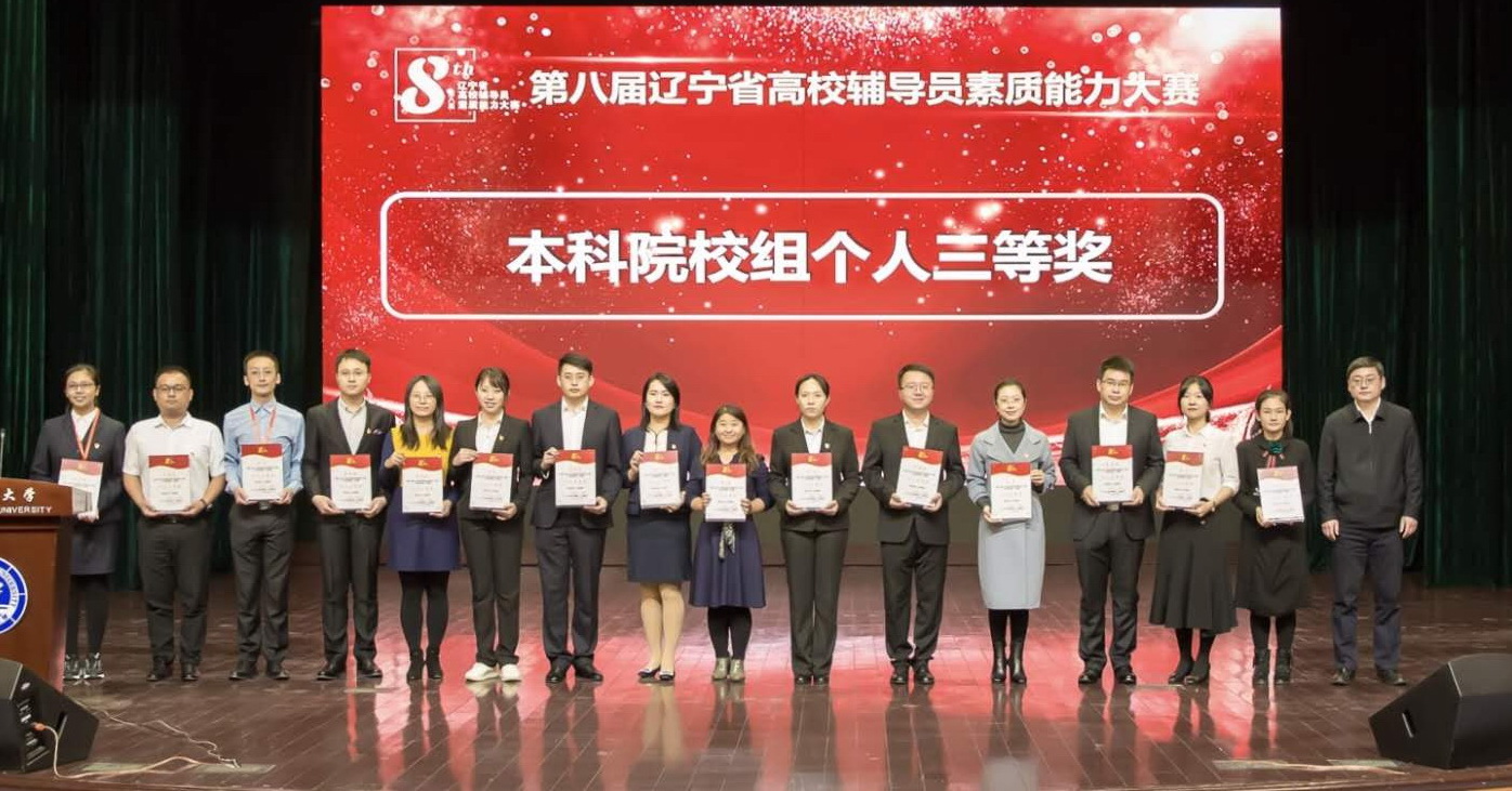辅导员龚艺老师被推荐代表我校参赛,并以第8名的初赛成绩从87名辽宁省高校辅导员老师中脱颖而出,进军决赛。经过激烈的角逐,龚艺老师最终以第12名的总成绩荣获本科院校组个人三等奖,取得了历届以来我校最佳成绩。我校荣获优秀组织奖。