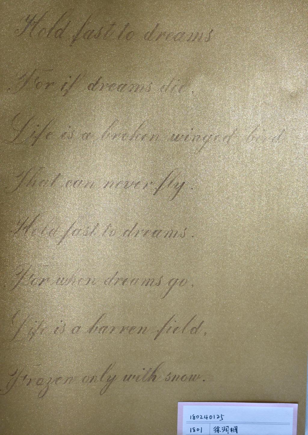 面向全体学生征稿,在全体学生的踊跃参与之下,截至23日共收到双语书法作品百余份。六色网