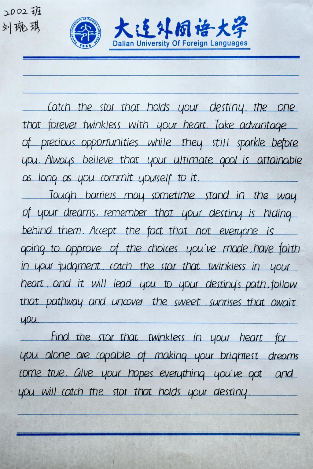 笔墨挥洒韵味,捷思闪烁光泽。通过这次比赛,同学们对书法产生了浓厚的兴趣,对传统文化具有了更深刻的认识。书法如同一颗闪亮的明珠,闪耀于字母与汉字之间,更闪耀于所有高翻学子的心中!