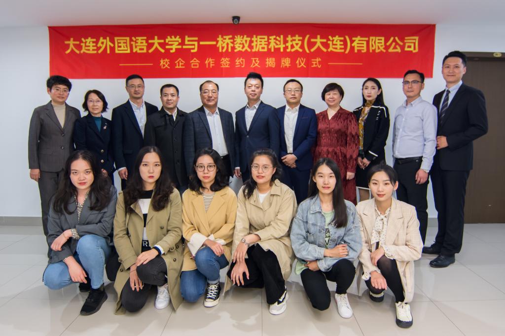 院长李春姬及研究生教研室主任赵颖与一桥数据科技(大连)有限公司总经理逄锦峰、总经理助理孙强、首席运营官佟放、股东代表赵淑春以及行业导师代表孙涧溪一同参加了签约暨揭牌仪式。