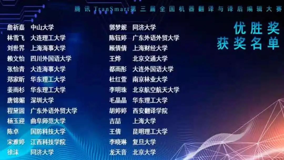 在“腾讯TranSmart第三届全国机器翻译与译后翻译编辑大赛”获得佳绩