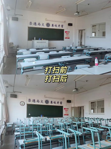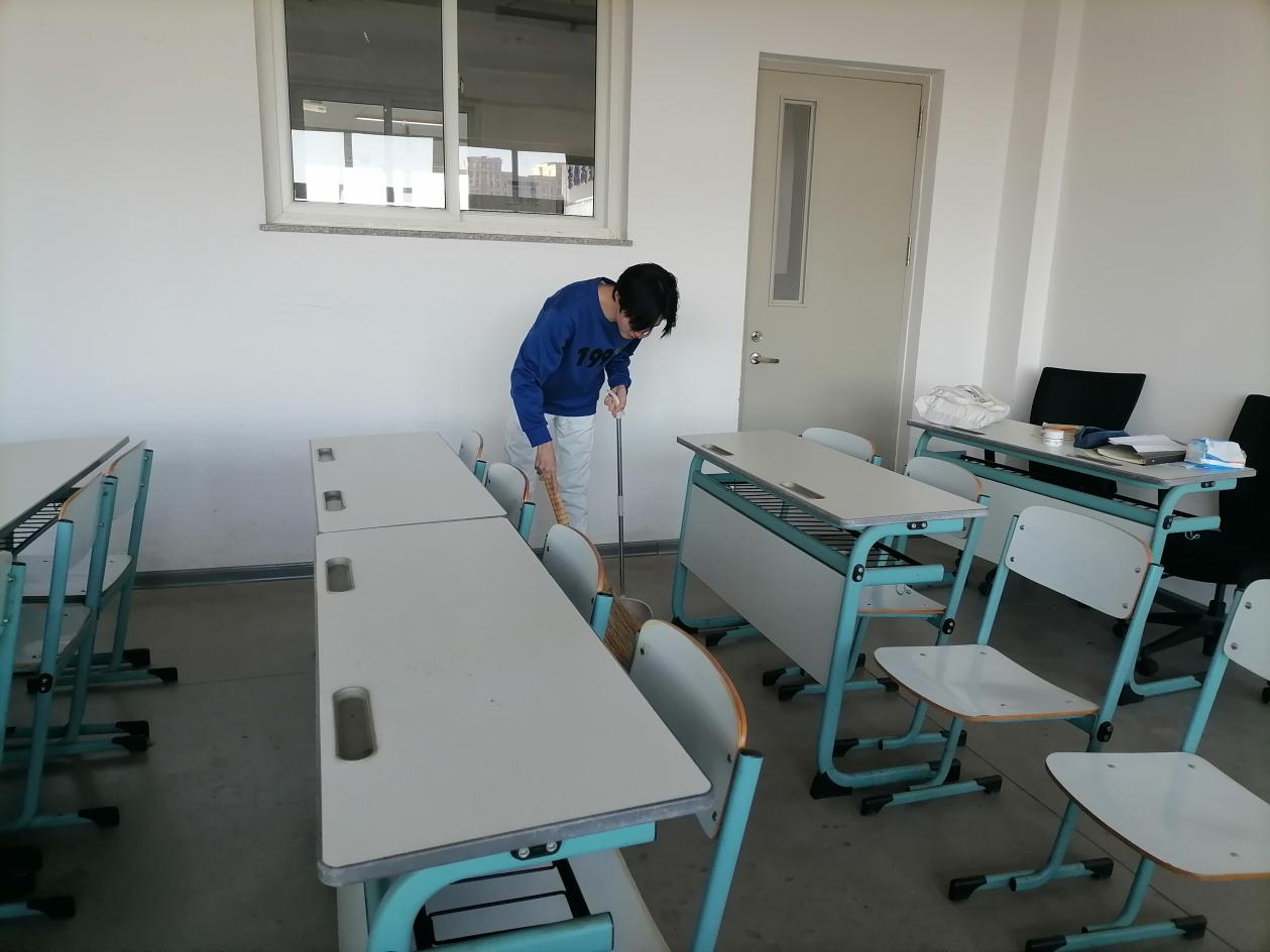 在清扫的过程中,大家都非常积极地劳动,不放过任何灰尘,将桌椅也都摆放的整整齐齐,将教室打扫的干净整洁。并且在此过程中大家并不仅仅完成自己的工作,有的同学在做完自己的清扫任务后,也能主动帮助其他同学分担清扫工作,共同完成了清扫活动。