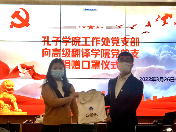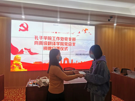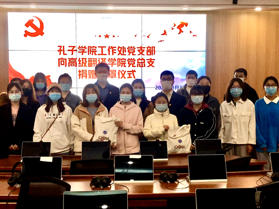 3月26日,孔子学院工作处蒋湘陵老师代表党支部现场进行捐赠,六色网