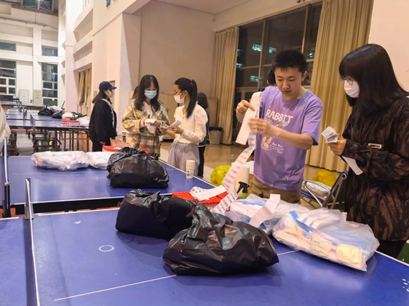 疫情就是命令,防控就是责任。4月11日晚,学生辅导员王楷瑞带领志愿者团队于风雨操场展开核酸现场的布置工作。志愿者们听从指挥安排,有序地将核酸试管、采样棉签、防护服等物资分发到各个核酸点,从而减轻了医护人员的工作压力;一米线是生命线、是健康线,每一位志愿者都细心地将一米线红色地标贴满检测场地,为科学分散人群、保持社交距离提供保障。最后,辅导员王楷瑞针对核酸过程讲解注意事项,他强调,信息录入员必须注意力高度集中,核酸协助人员也要将时刻注意试管内的样品数,不能出现任何差错。相信在每位志愿者的认真协助下,定能汇聚起全校师生众志成城、共抗疫情的强大力量。