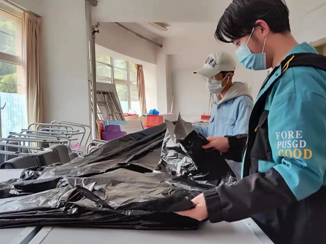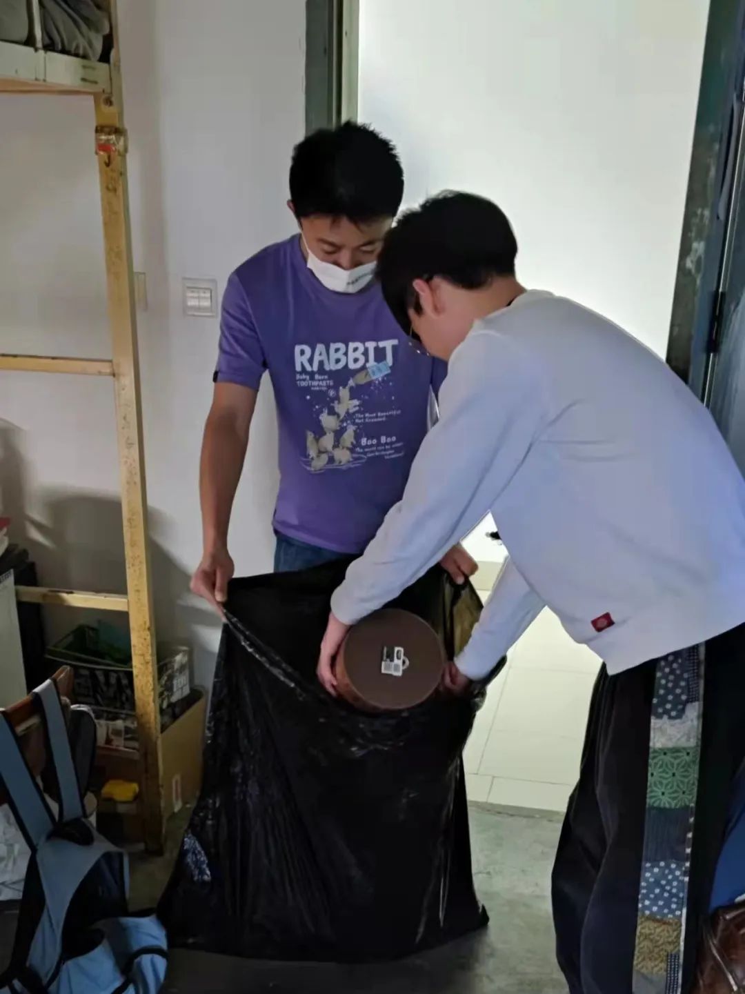 在了解分配的负责区域后,志愿者们首先来到励志楼一楼领取塑料袋,以便将垃圾集中处理,防止垃圾外泄或遗漏。在收集寝室垃圾中,志愿者们表现出不怕苦不怕累的劳动奉献精神的同时,也展现了高效的工作能力和优秀的涵养。而同学们更是回应以真诚的感谢,表示会努力减轻志愿者和后勤人员的工作量。