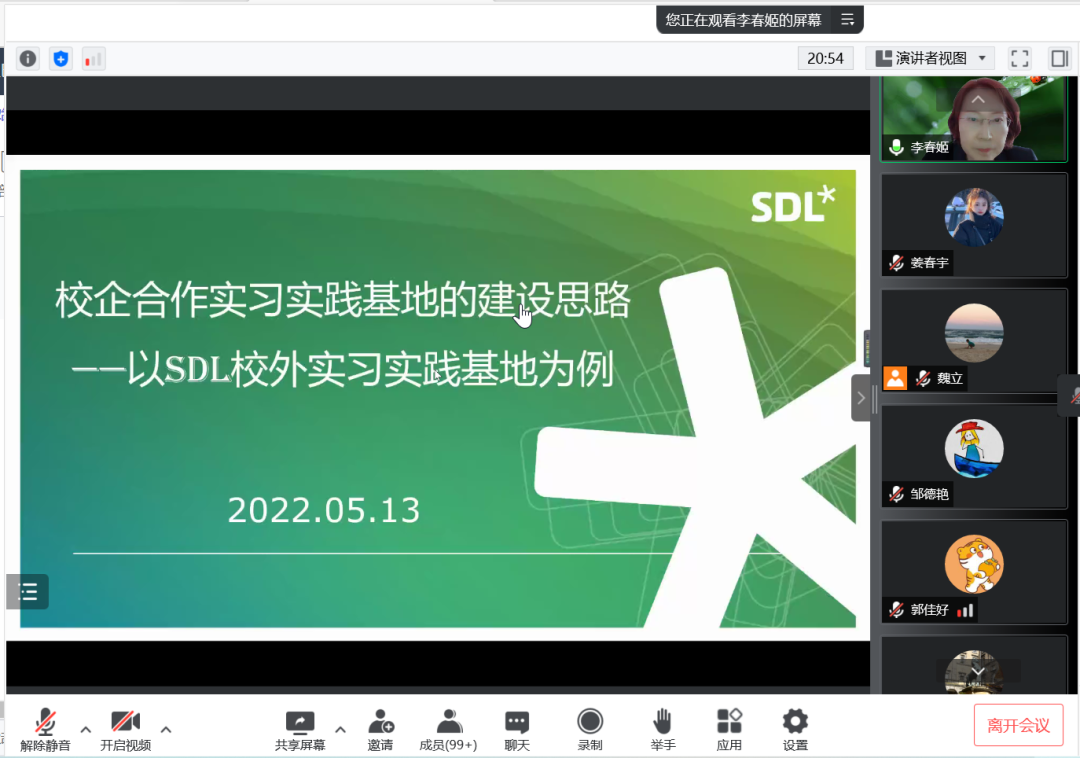 及院外近百名师生在云端相聚,分享了实习实践基地建设的经验和成果。