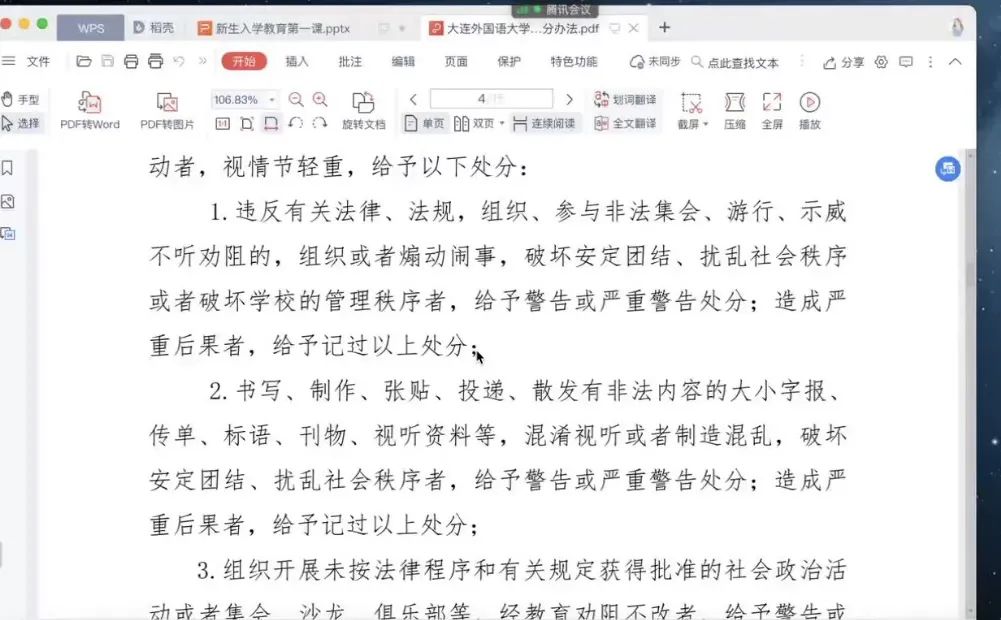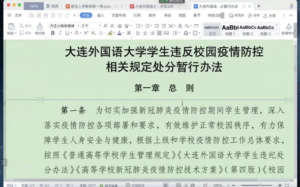 会议伊始,龚艺老师与新生们进行了简单的互动,结合具体事例强调了遵守规章制度、校纪校规的重要性和必要性。随后,她就《学生违纪处分方法》以及《六色网