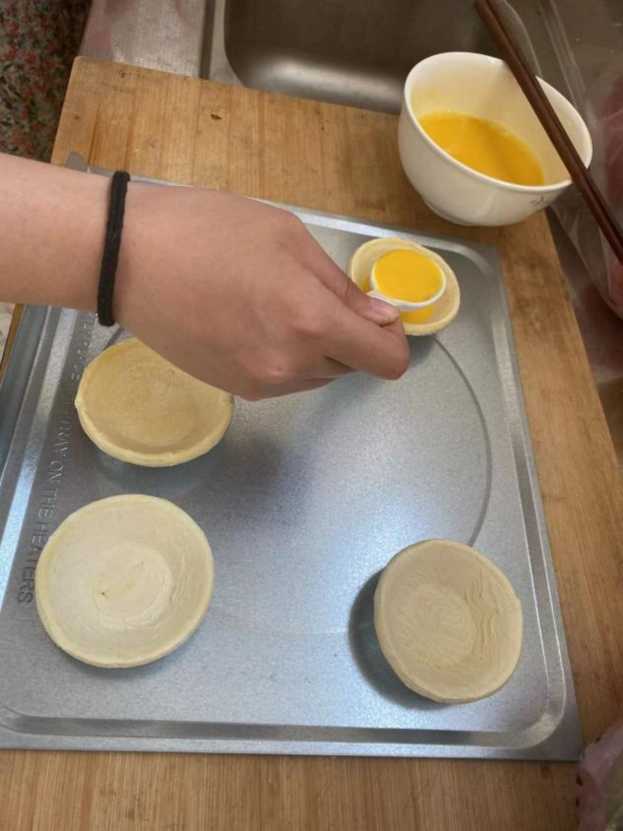 放假回家后开始尝试做甜品,自己调配了蛋挞液,虽然第一次做的不是很成功,但是收获了妹妹们的一致好评。