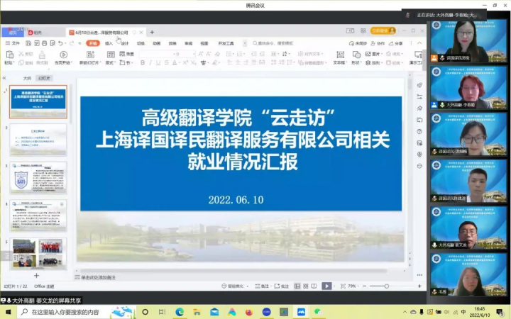 于6月10日下午召开“大外高翻-译国译民”校企合作线上交流会,并就实习与就业方面问题进行积极有效的沟通。