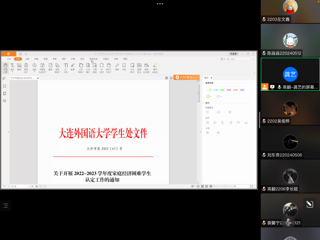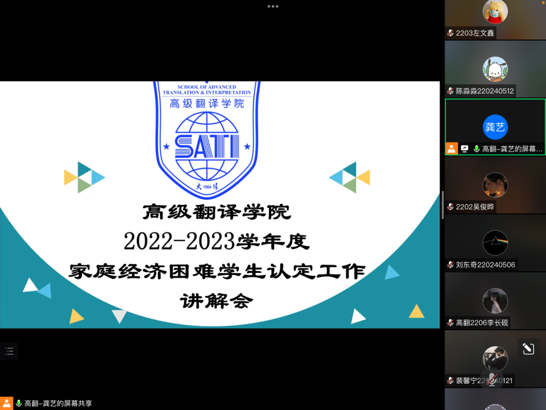 于云端召开了本学年度家庭困难学生认定工作讲解会。本次会议由学生辅导员龚艺老师主讲,2022级全体新生参加本次会议。