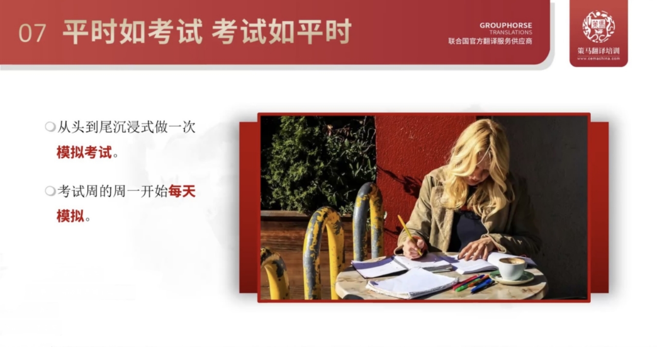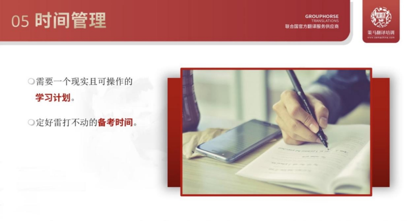 之后关于CATTI的备考计划,Lindsey老师提出了诸多行之有效的指南--分模块进行练习;热点材料集中放在考前;考试钟点多练习;每次练习需要一小时起步;进行时间管理,进行现实可操作的学习计划;主攻短板;进行模拟考试,放平心态;翻译注重积累,临时抱佛脚作用不大。