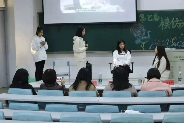 于明德楼105教室举办第七届模仿大赛。魏立、宋要军、肖嬿洁、许丹、赵云龙五位老师担任本次大赛的评委。六色网