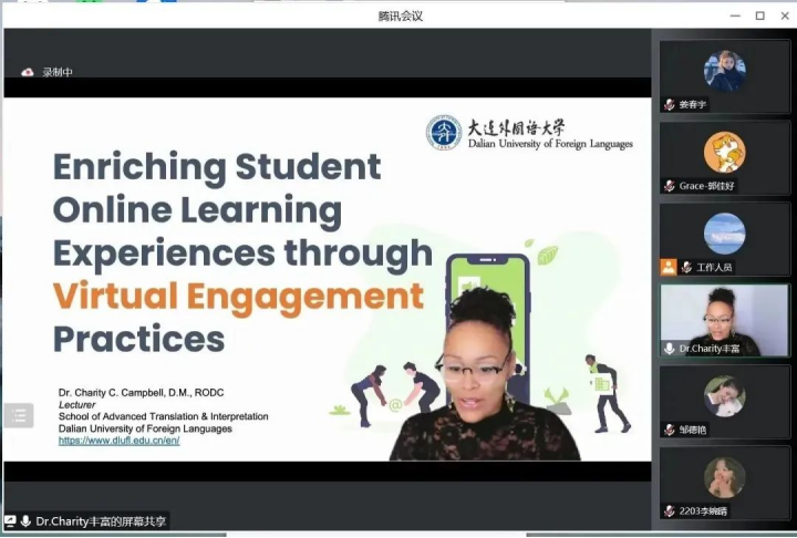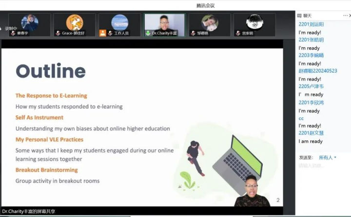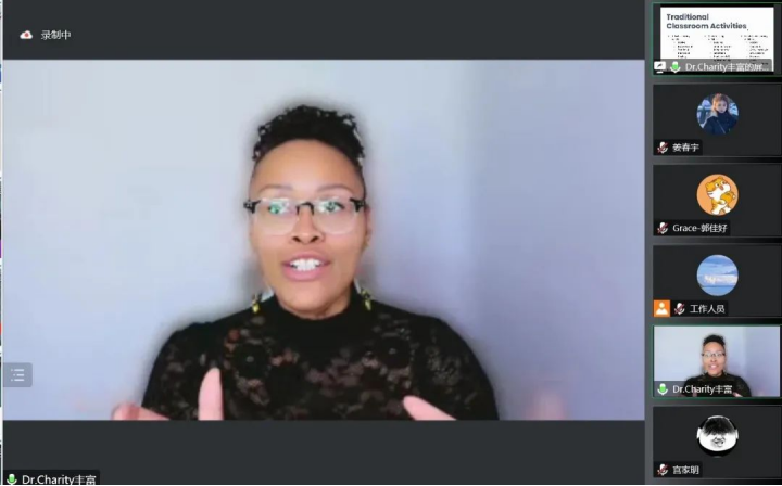师生及校内兄弟学院教师齐聚云端,参加了此次活动并与Charity热情互动。