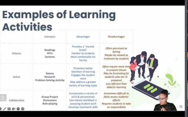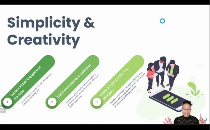 Charity博士首先介绍了她本人的线上授课方式以及经验。Charity博士认为互动是线上授课必不可少的一环,因此她常会将“话筒”交给同学们。为引导学生独立思考,她也鼓励同学们采用多种方式来参与课堂讨论。同学们可以在聊天框内打字,也可以开麦直接交流,Charity博士也会让同学们使用丰富有趣的表情包进行互动,来营造轻松有趣的线上授课氛围,将数字科技与语言教学融合,提升学生在线学习体验。