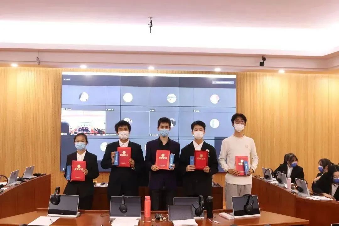辩论队2020级负责人姜伊惟,2021级负责人陈家馨,新闻与传播学院辩论队2021级负责人于啸然担任评委。
