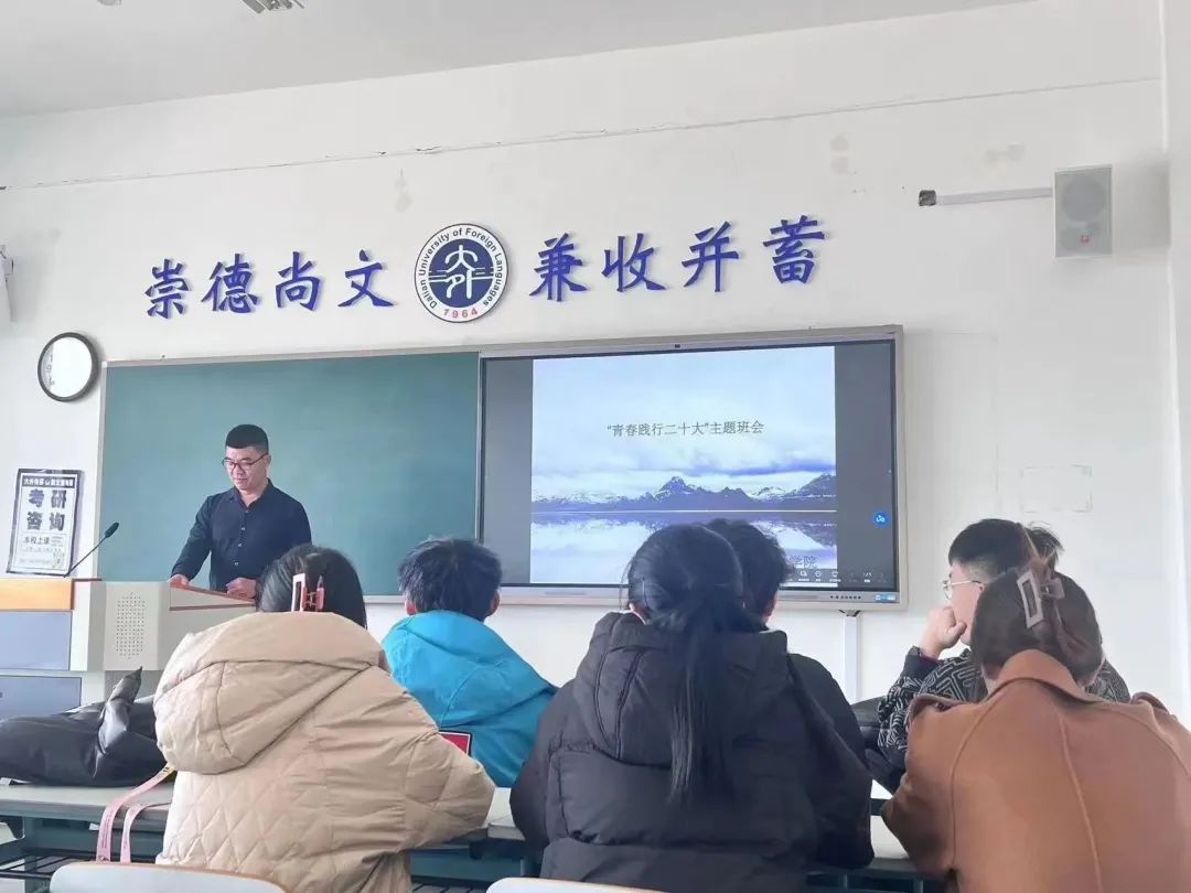 于2月27日、3月1日分别召开了“青春践行二十大”等主题班会。本次主题班会分别由王楷瑞老师、龚艺老师、朱林老师主讲,各年级全体同学参加。