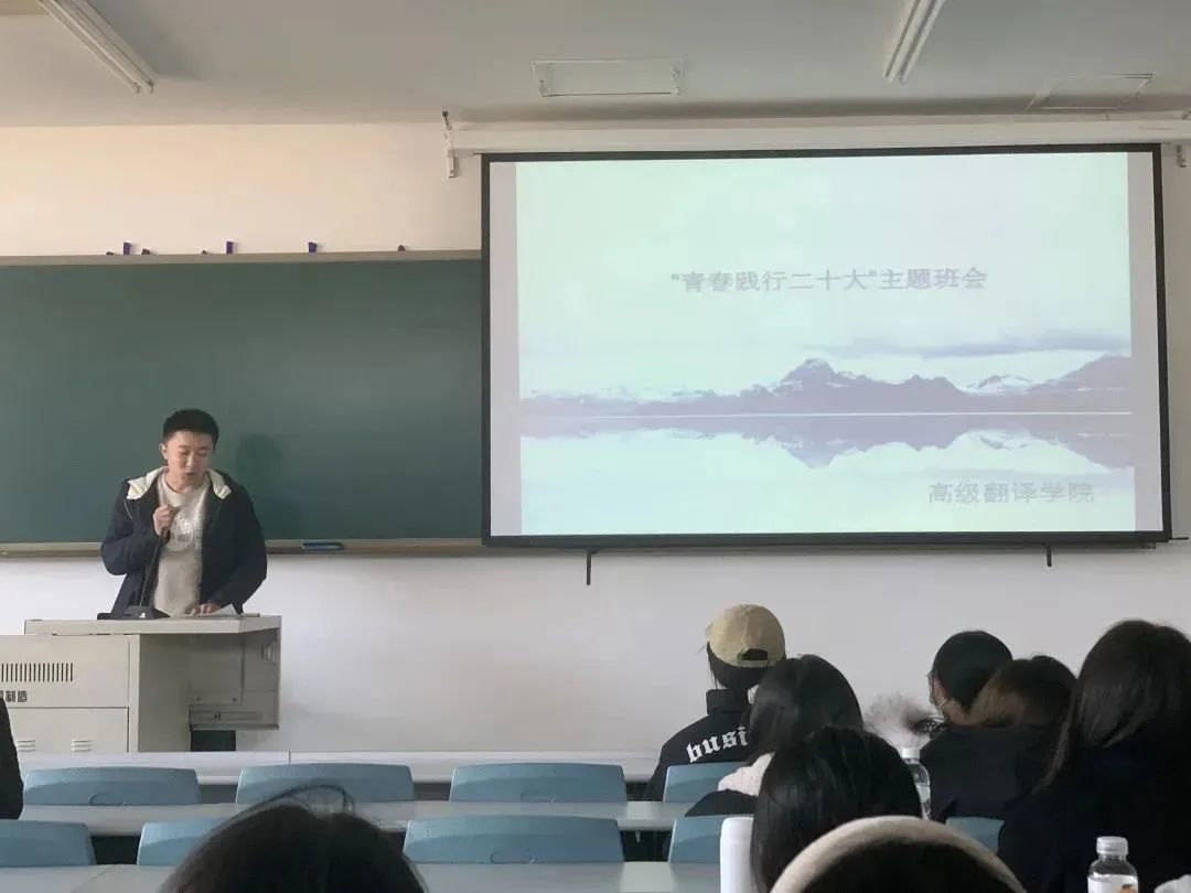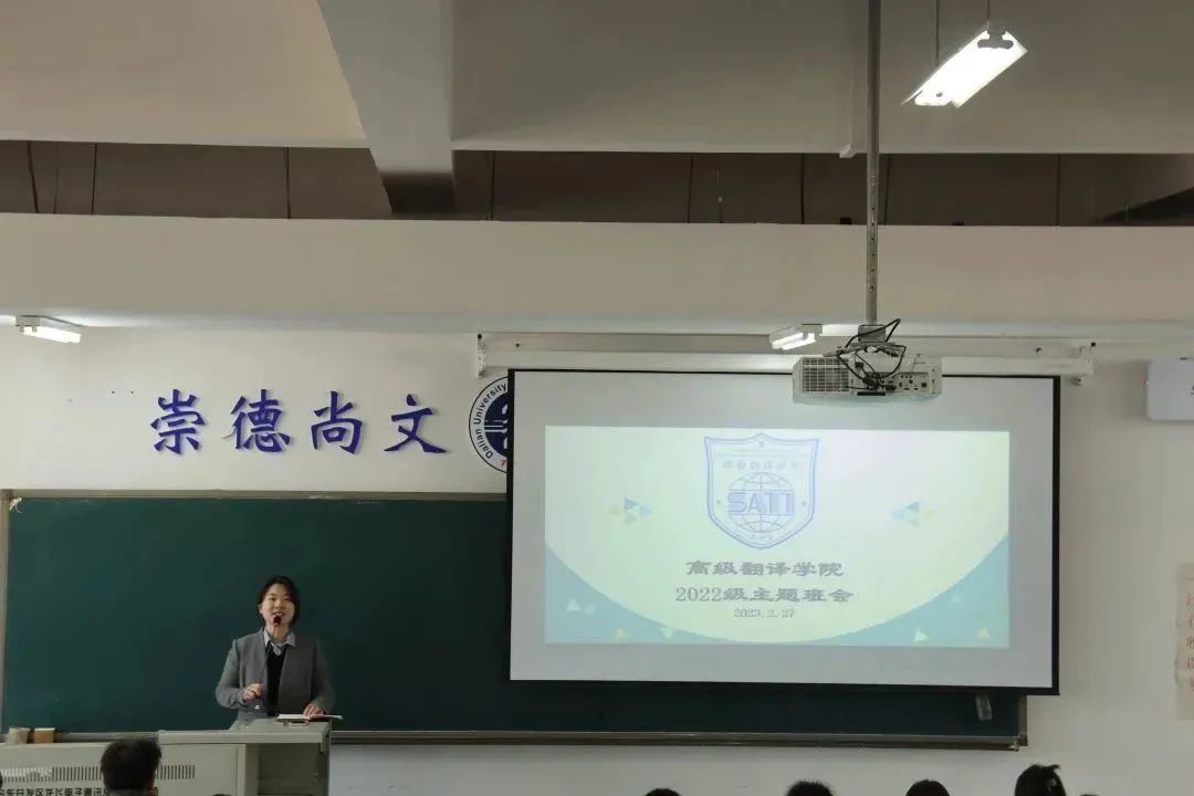 于明德楼302教室召开了2022级主题班会。本次会议由龚艺老师主讲,全体2022级学生参加。主题班会中,龚老师就同学们提出的外出规定、请假方式、走读相关程序等方面的问题,结合学校最新政策要求进行了详细讲解,并再次提醒同学们要注意保护好人身及财产安全,谨防诈骗。最后龚老师指出,大一是同学们夯实基础、需要砥砺奋进的时期,希望同学们立足长远,把握当下,积极进取,最好职业规划,争做优秀高翻人。