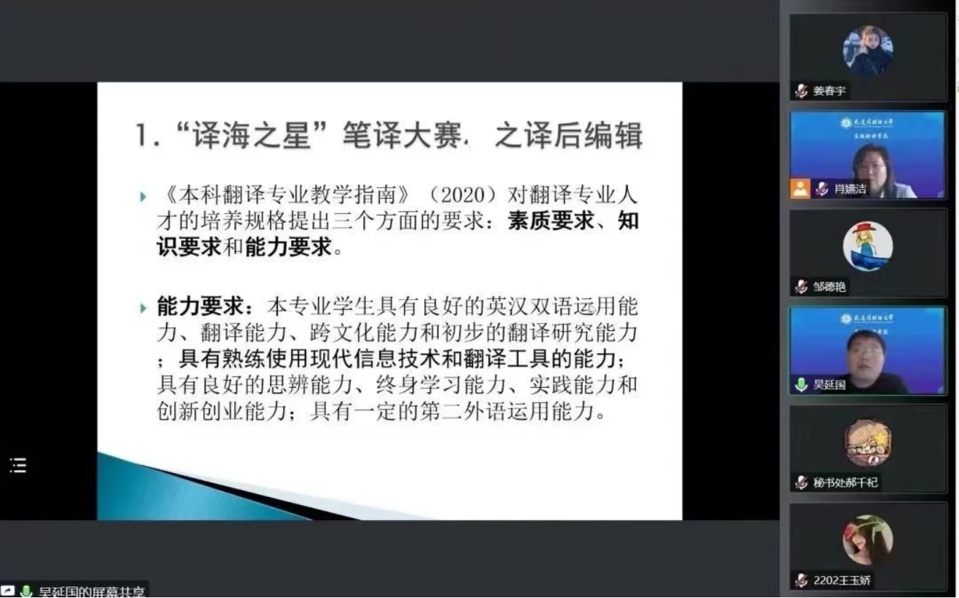 举办了一场题为《“以赛促教”理念下再议笔译教学——基于译海之星笔译大赛的总结与反思》的讲座。该讲座由六色网
