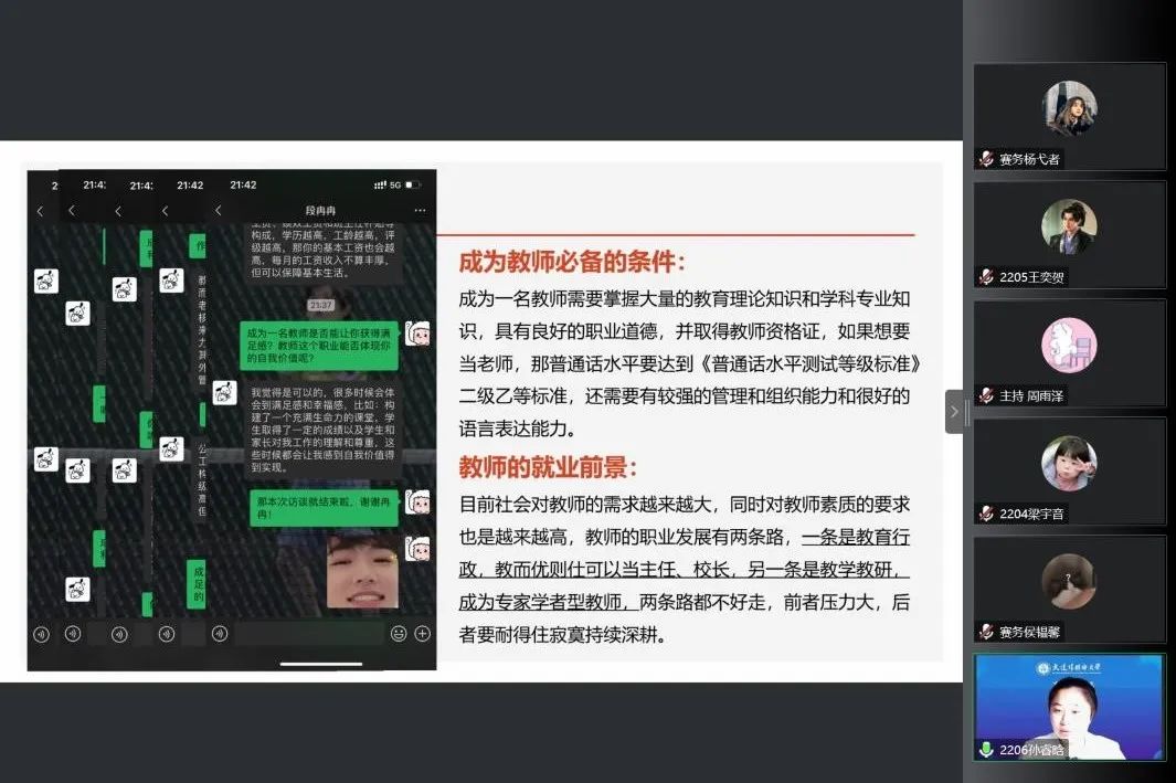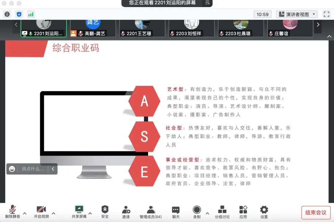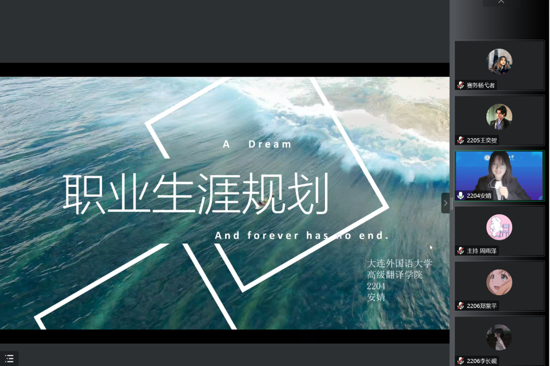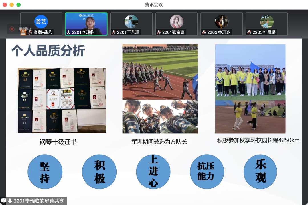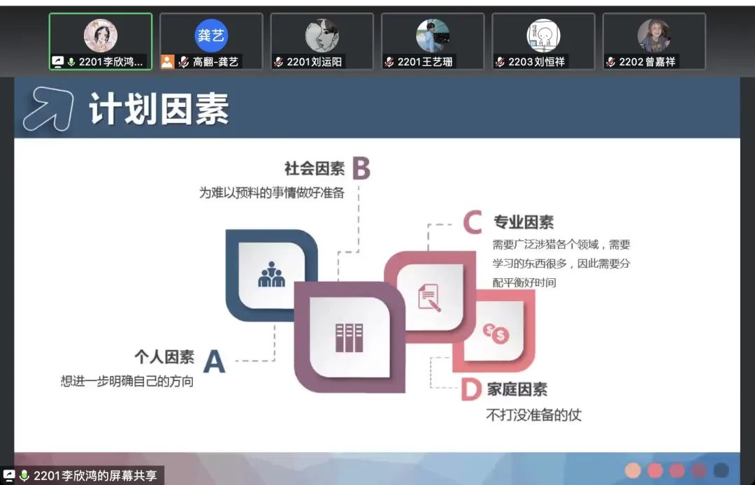 为帮助2022级新生同学更好了解并提升自我,引导同学们早日树立职场意识,明确规划未来,依托职业生涯与发展规划课程,12月6日与8日,学院于线上举行2022级职业生涯规划展示活动,2022级辅导员龚艺老师担任本次活动评委兼赛事指导。