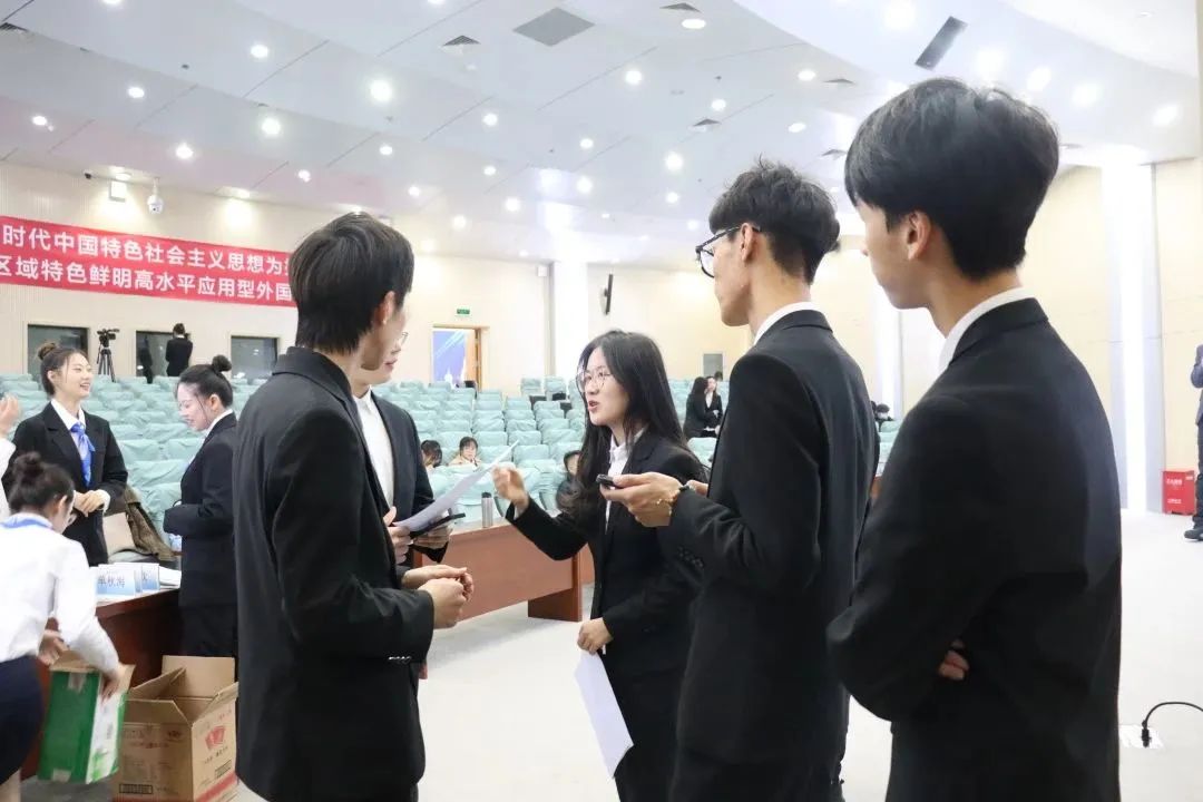 分团委书记兼学生辅导员朱林老师亲临指导。他们仔细调试设备、布置会场、筹备赛事相关事务,熟悉比赛流程。“召之即来,来之能战”,他们是背后默默付出的服务标兵,只为将服务做到最好!此外,学生们志愿们为参赛选手以及嘉宾提供引领入校、指引签到、一对一熟悉校园等活动,他们用最真诚的微笑,最饱满的工作热情迎接每一位选手。并向选手们热情详细介绍了我校的办学理念、校园文化、德育特色等方面内容。他们付出的每一分辛苦,脸上洋溢的每一分微笑,都换来了参赛选手和嘉宾们的交口称赞。