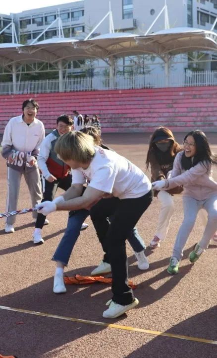 下午三点,趣味运动会正式拉开帷幕。工作人员通过抽签的方式,将所有参赛同学和老师分为四组。运动场上,高翻健儿各展风采,精彩角逐。通过“两人三足跑”“双人跳绳”“踩气球”“折返井字棋”以及附加赛“拔河”五个项目,充分展现了大家齐心协力、奋力进取、自强不息的团队精神,赛出了活力、赛出了风采。这五个项目从沟通协调能力、团队合作能力、逻辑思维能力等方面对同学和老师们进行了综合考验。现场气氛热烈、其乐融融,欢呼声不断。最后,本次趣味运动会在大家的欢笑声中圆满结束。