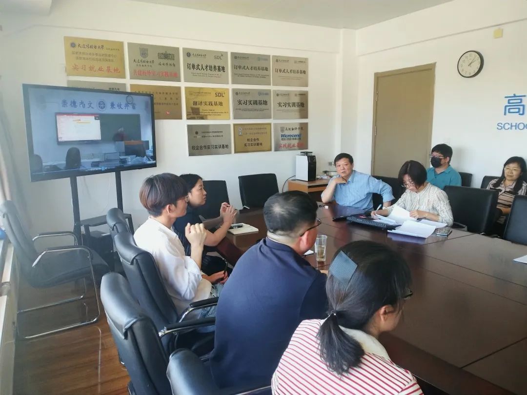 随后,赵勇老师代表高级阶段课程团队,以译著《海韵大连》为主题展现了翻译专业四年级核心课程《笔译工作坊》公开课。在授课过程中,赵老师基于真实笔译案例,展示了“作品评析——专题讲解——学生讲评”的师生互动序列。赵老师侧重培养学生的翻译主动性,学生分享与教师点评有机融合,以加深同学们对翻译项目的深度理解,提高同学们的综合翻译能力。展示结束后,听课教师对公开课内容及讲授方法进行了研讨,吴延国、郭佳好老师基于自身的《笔译工作坊》授课经验进行了互动分享。