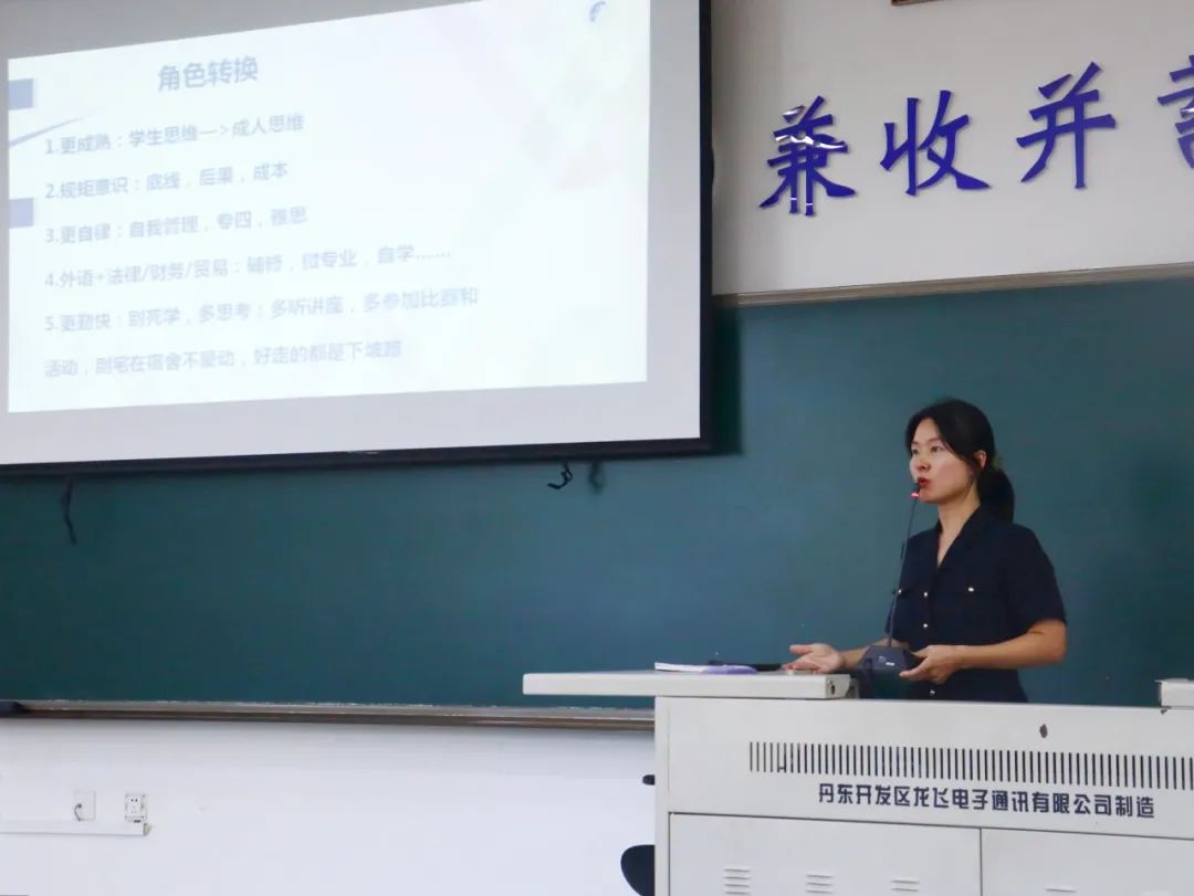 在本次大会中,龚艺老师首先提醒们同学们要注意保护个人生命及财产安全,她向同学们介绍了过往学生遭遇网络诈骗的案例,以此警醒同学们加强防范意识,谨防上当受骗。同时她也强调了宿舍合规用电的问题,叮嘱大家应遵守校规校纪,珍惜生命安全。此外,龚老师强调,大二伊始,同学们应明确未来发展规划,有意识的设立个人目标,及时完成大一到大二的角色转换。龚老师还提出,在升入大二后,学生易出现边界意识松散的现象,她提醒我们不应随波逐流,要不断加强自我管理,培养自身自律性,以不懈的努力为即将面临的各类考试打下坚实的基础。同时,龚老师提醒同学们应把握机会,积极参加各类竞赛及活动,不断丰富个人履历,充实地过好大学生活。大会尾声,龚老师向同学们介绍了当下外语专业的就业情况,并建议同学们广泛学习,不断拓宽自身视野,为成为复合型人才而不懈努力。
