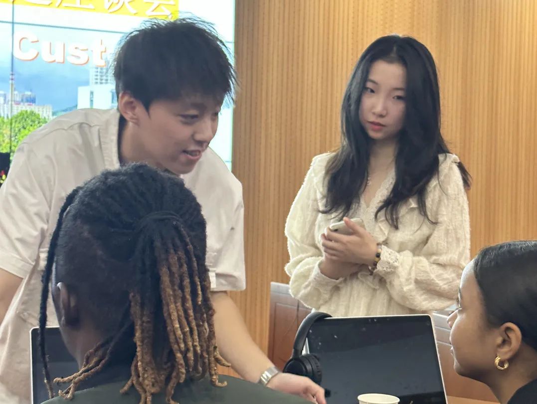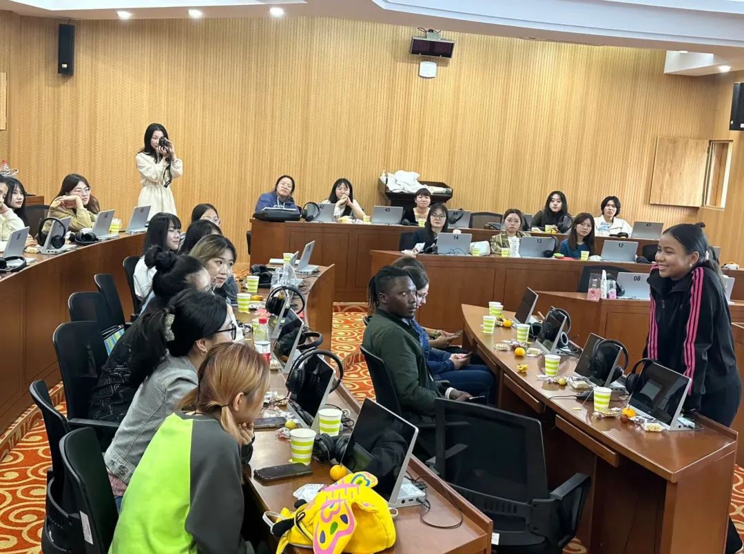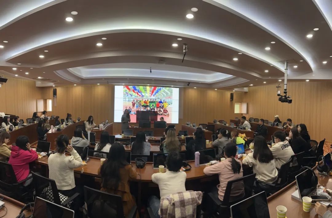 研究生会主办以“家乡文化”为主题的英文沙龙活动在11B105智慧教室举行。本次活动由学院党总支副书记兼2023级研究生辅导员李华老师策划指导,汉学院国际学生辅导员高天老师与留学生连线,研究生会学习部部长刘政和副部长张婷婷共同主持,四名汉学院留学生受邀参加座谈会,部分2023级研究生参加。