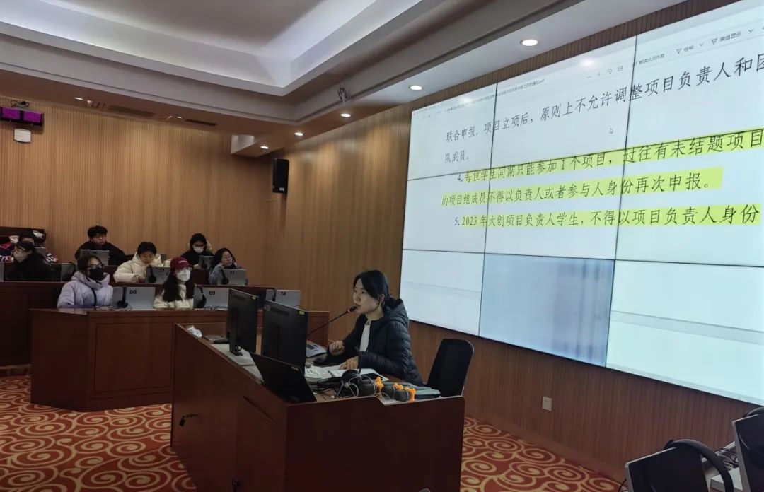 于11B502召开2024年大学生创新创业训练计划项目申报宣讲会,本次会议由龚艺老师主讲,学院全体对大创项目感兴趣的同学参加。